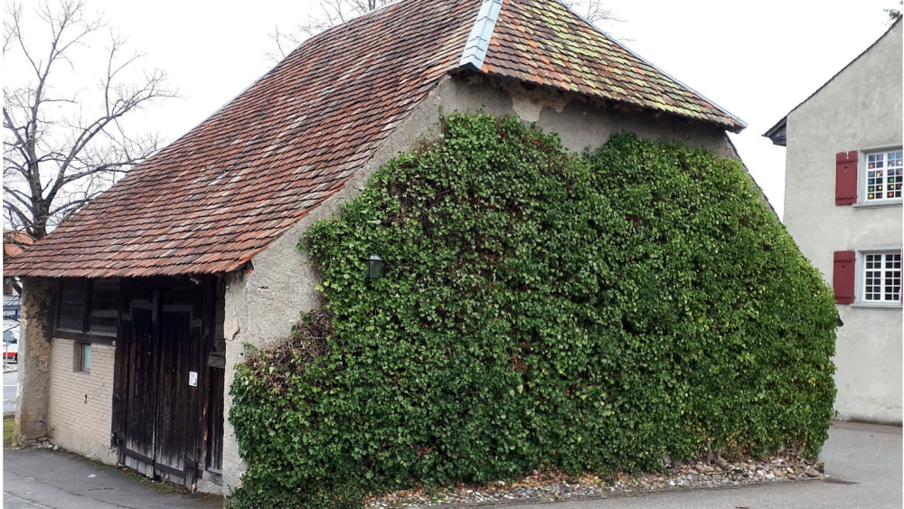 Eingangs Dorf, gleich beim Pfarrhaus, an der Räckholdernstrasse 1. Die Nordfassade ist etwas verdeckt durch die grosse Linde und von der Südfassade sieht man nur das grüne Efeu, welches die Wand bis zum Dach bedeckt. Der unter Denkmalschutz stehende Schopf beherbergt zurzeit die Ministranten und dient als Lager- und Abstellplatz.