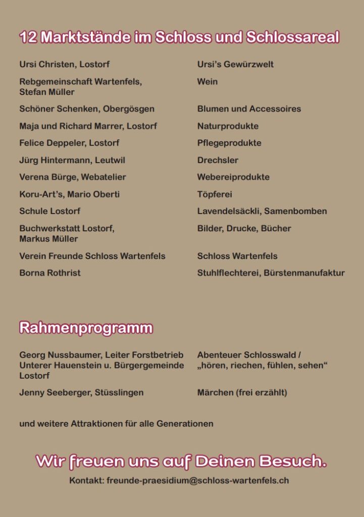 Weitere Informationen unter: www.schloss-wartenfels.ch.