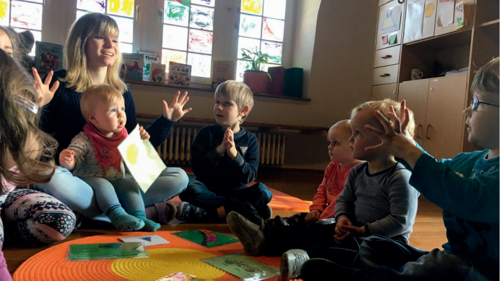Es ist schon kurz vor sieben, meine Eltern bringen mich in die Kinderburg. Ich freue mich, einen ganzen Tag mit anderen Kindern zu spielen, singen, basteln…