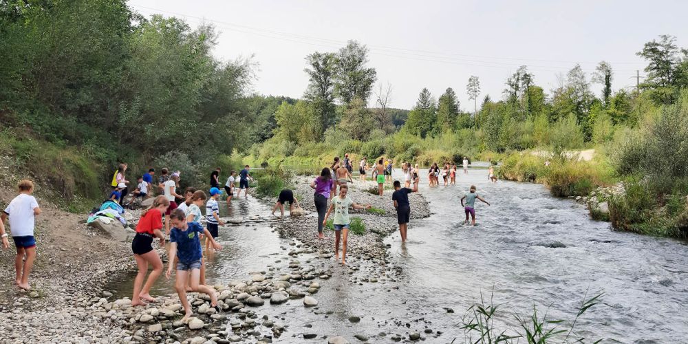 Wir starteten am 13. September 2022 beim Sportplatz um 10 Uhr mit den 5. und 6. Klassen für die Herbstwanderung zur alten Aare.