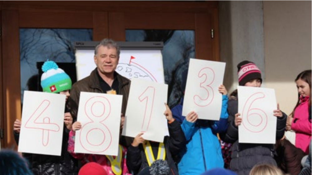 Wir haben uns gemeinsam folgendes Ziel vorgenommen: Können wir als Schule einmal um die ganze Welt wandern? Wir berechnen dazu quartalsweise den Schulweg, den die Kinder zu Fuss zurückgelegt haben. Zudem zählen wir auch bei den Herbstwanderungen, Turnaktivitäten und Schulreisen die Kilometer. Regelmässig treffen wir uns und der Schulleiter verkündet den Zwischenstand der bisher geleisteten Kilometer. Erstaunlicherweise durften wir am 2. Februar erfahren, dass wir die 42000 Kilometer bereits erreicht haben. Unsere neue Herausforderung lautet also nun: Wird es uns ein weiteres Mal gelingen, die Welt zu umrunden?