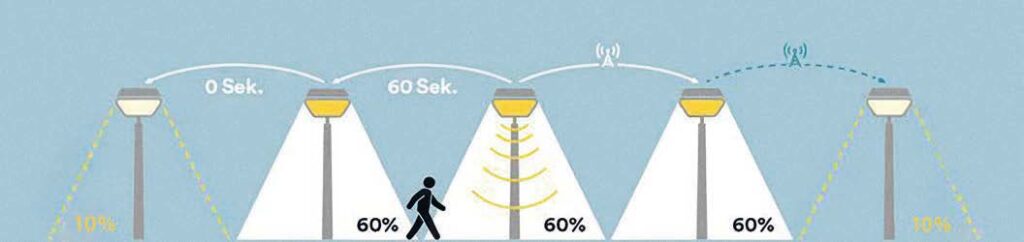 Seit dem 1. Dezember 2025 wurde an der Sandgrubenstrasse – vor der Dreirosenhalle – eine Teststrecke speziell gesteuerter Strassenlampen in Betrieb genommen. Dabei leuchten die Kandelaber nur dann mit voller Leistung, wenn jemand vorbeigeht oder fährt. Das spart Strom, reduziert Lichtemissionen und vermittelt trotzdem Sicherheit. Ziel des Testbetriebs ist es, die Akzeptanz in der Bevölkerung sowie die Funktionalität des Produktes zu testen. In einem weiteren Schritt wird dem Gemeinderat ein Angebot des Netzbetreibers vorgelegt, welches die Modernisierung aller Strassenleuchten vorsieht. Als erstes müssten dafür noch mehr als die Hälfte aller Strassenlampen auf LED umgerüstet werden.