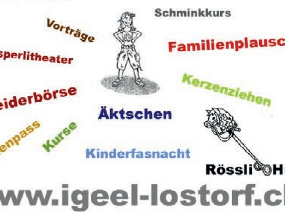 Spielgruppe «Seifiblöterli», Kinderfasnachtsumzug, Rössli-Hü, Kinderkleiderbörse, Ferienpass, Vortr…