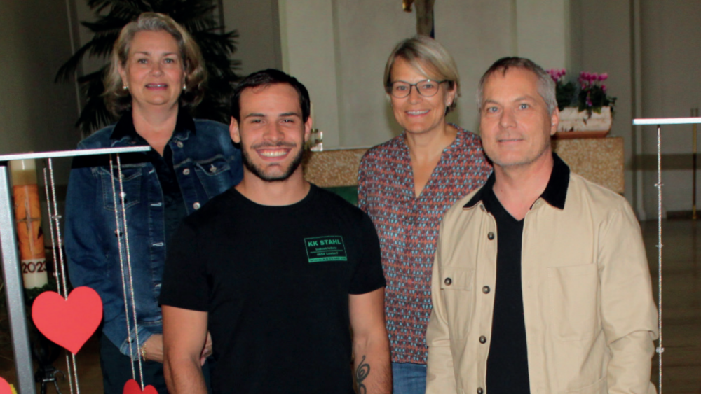 So kam die Idee auf, zwei mobile Lebensbäume in einer moderneren Form aus Metall herstellen zu lassen, die je nach Feierlichkeiten an einen zentralen Standort verschoben werden können. Diese Aufgabe übernahm die Firma KK Stahl Knecht&Co. in Lostorf, unter der Leitung von René Knecht. Zu unserer grossen Überraschung und Freude eröffnete er uns, dass die beiden Bäume ein Geschenk seiner Firma an die katholische Kirche seien. Für diese grosszügige Gabe von Herrn Knecht und für die akribische Arbeit des Lehrlings, Kevin Schmid, sowie für die grossartige Zusammenarbeit sind wir unglaublich dankbar.