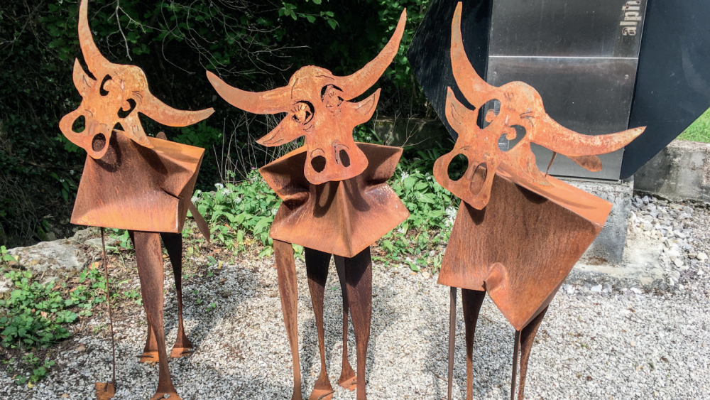 Der Mahrer Künstler Jürg Meyer war Gast an der Frühjahresausstellung im Dorfmuseum Lostorf. Seine Ansichten der Hauptstrasse Nord lockten wiederum Sonntag für Sonntag ein zahlreiches Publikum an. Vor dem Museum wurden die Besucherinnen und Besucher von drei «Roschtelis» empfangen. «Roschtelis» nennt Jürg Meyer seine Metallkühe, die er als Hommage an den verstorbenen Landwirt Fritz Mollet gestaltet hat.