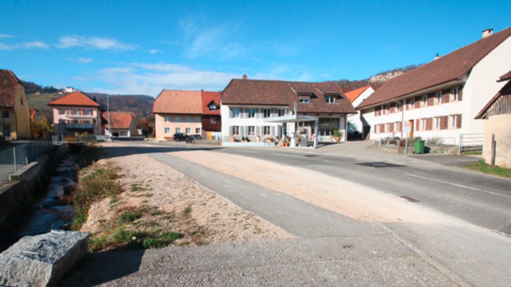 Auf der Platzerweiterung bis zum Bach hin kann unter Einbezug des Jurawegs, auch eine neue Dorfaktivitätszone geschaffen werden, auf welcher das Dorfleben stattfinden kann. Wie dies aussehen kann, sieht man jeweils beim bereits heute hier stattfindenden «Dorfmäret».