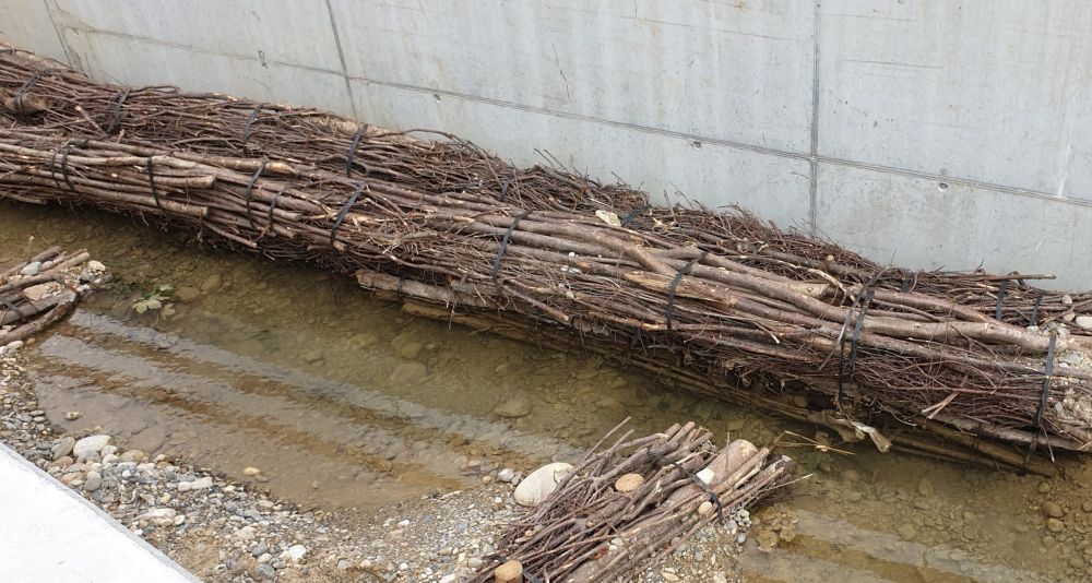 Die heute angelegte Niederwasserrinne wird dabei durch diverse „Einbauten“ wie Faschinen (= festgezurrte Astbündel) oder „Fischgaragen“ gebildet. Allerdings wird sich der Bach im Laufe der Zeit seinen eigenen, sich wohl ab und zu verändernden, Weg bahnen. Dabei darf er sich innerhalb der flankierenden Betonmauern beliebig und naturnah ausbreiten.