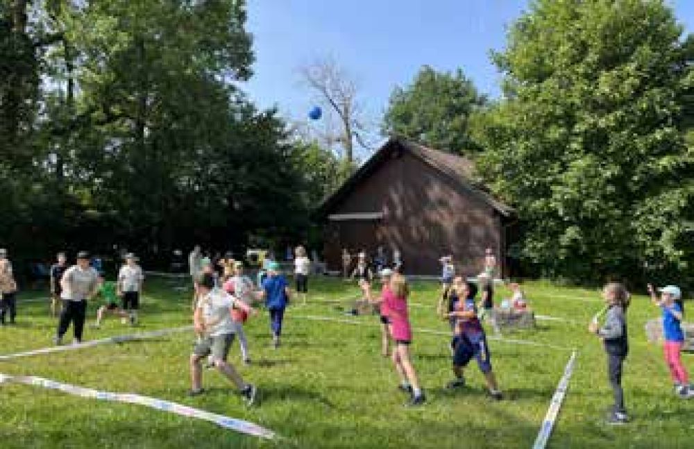 Die beiden 3. Klassen spazierten gemeinsam zum Schützenhaus. Dort erwarteten sie verschiedene Ballspiele.