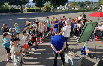 Die drei 2. Klassen machten an ihrem Sportnachmittag, ebenfalls in klassendurchmischten Gruppen, Spiele wie Fussball und Kubb. Sie massen sich aber auch im OL auf dem Sportplatzgelände und im Ballweitwurf. Jedes Kind gab sein Bestes und nach der Entspannung, mit einer Fantasiereise, gab es für alle eine kühle Glacé. Mmmh!