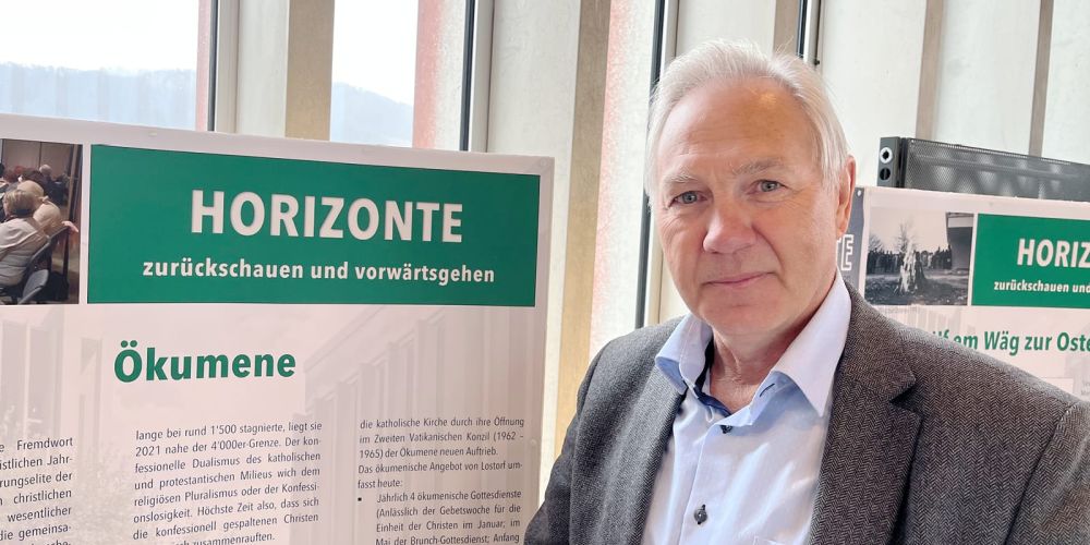 Die Ökumene war mir immer sehr wichtig, deshalb nimmt sie bei der aktuellen Ausstellung in der Reformierten Kirche Lostorf, mit einer Rückschau auf meine Arbeit in den letzten Jahrzehnten, einen wichtigen Platz ein. Die ökumenische Arbeitsgruppe der evang.-reformierten und röm.-katholischen Kirchgemeinde trifft sich auch nach vielen Jahren und pflegt eine intensive Arbeitsbeziehung. Ökumene meint nicht nur die Zusammenarbeit mit den anderen Landeskirchen, sondern auch die Zusammenarbeit mit den Behörden der Einwohnergemeinden oder Bürgergemeinden. Wir alle sprechen die gleiche Bevölkerung an und dürfen uns nicht gegenseitig konkurrenzieren.